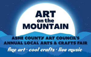 Ashe County Arts Council will sponsor Art on the Mountain on September 23, 2023. Over twenty-five artists and craft persons will set up their creative wares on the grounds of the Ashe Arts Center in West Jefferson. Holiday gift ideas, fall theme items, unique art pieces, crafts and more will be for sale. Several artists will be demonstrating their artwork including basket weaving, quilting and wood-working.