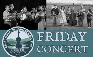 Join us at the Ashe Park on July 26-27, 2024, for the annual Fiddlers Convention. Focused on honoring the Old Time and Bluegrass music of the mountains – and the musicians who make it. The Convention will be held at Ashe County Park in Jefferson offering camping, food cooked on site, and individual and band competitions – featuring great music and cash prizes!