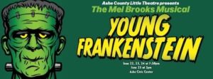 Grandson of the infamous Victor Frankenstein, Frederick Frankenstein inherits his family’s estate in Transylvania. With the help of a hunchbacked sidekick, Igor and a leggy lab assistant, Inga , Frederick finds himself shouting “It’s alive!” as he brings to life a creature to rival his grandfather’s. The monster escapes and hilarity continuously abound. This musical features a host of fun songs to bring the story to life! Tickets are available at www.ashecountylittletheatre.org.
