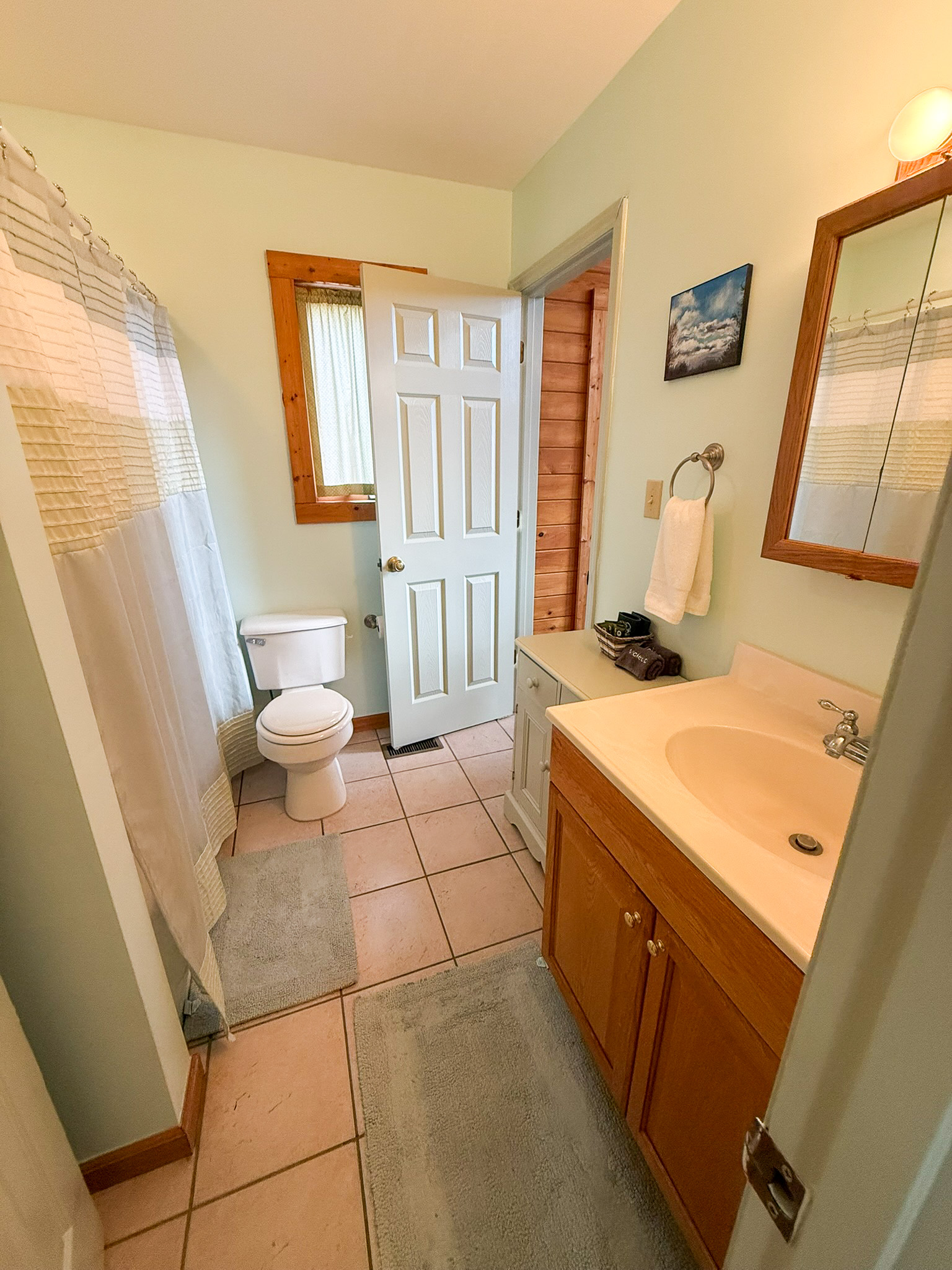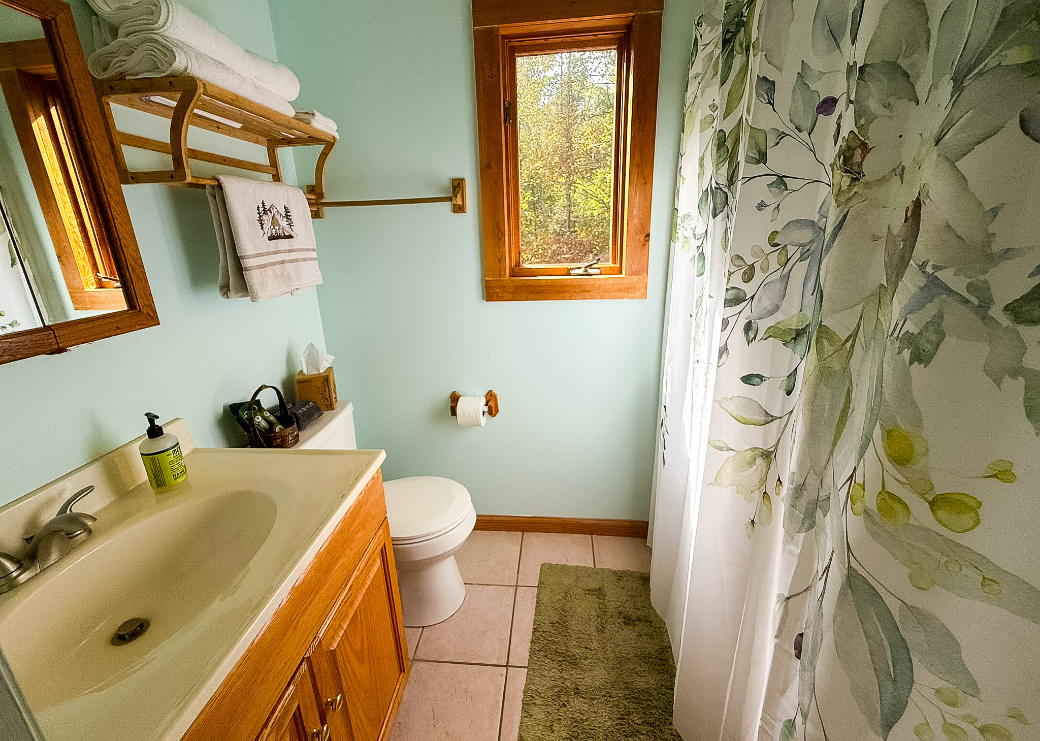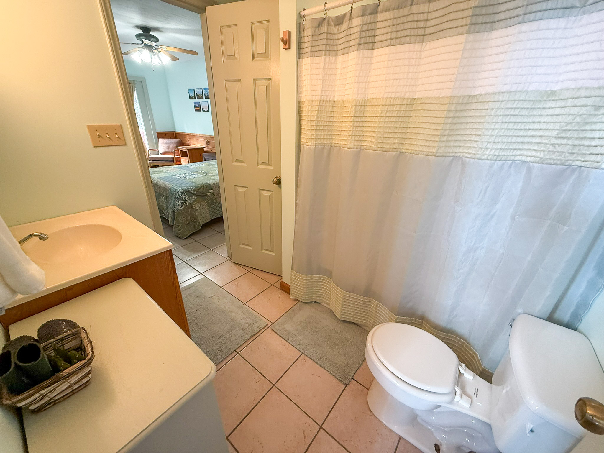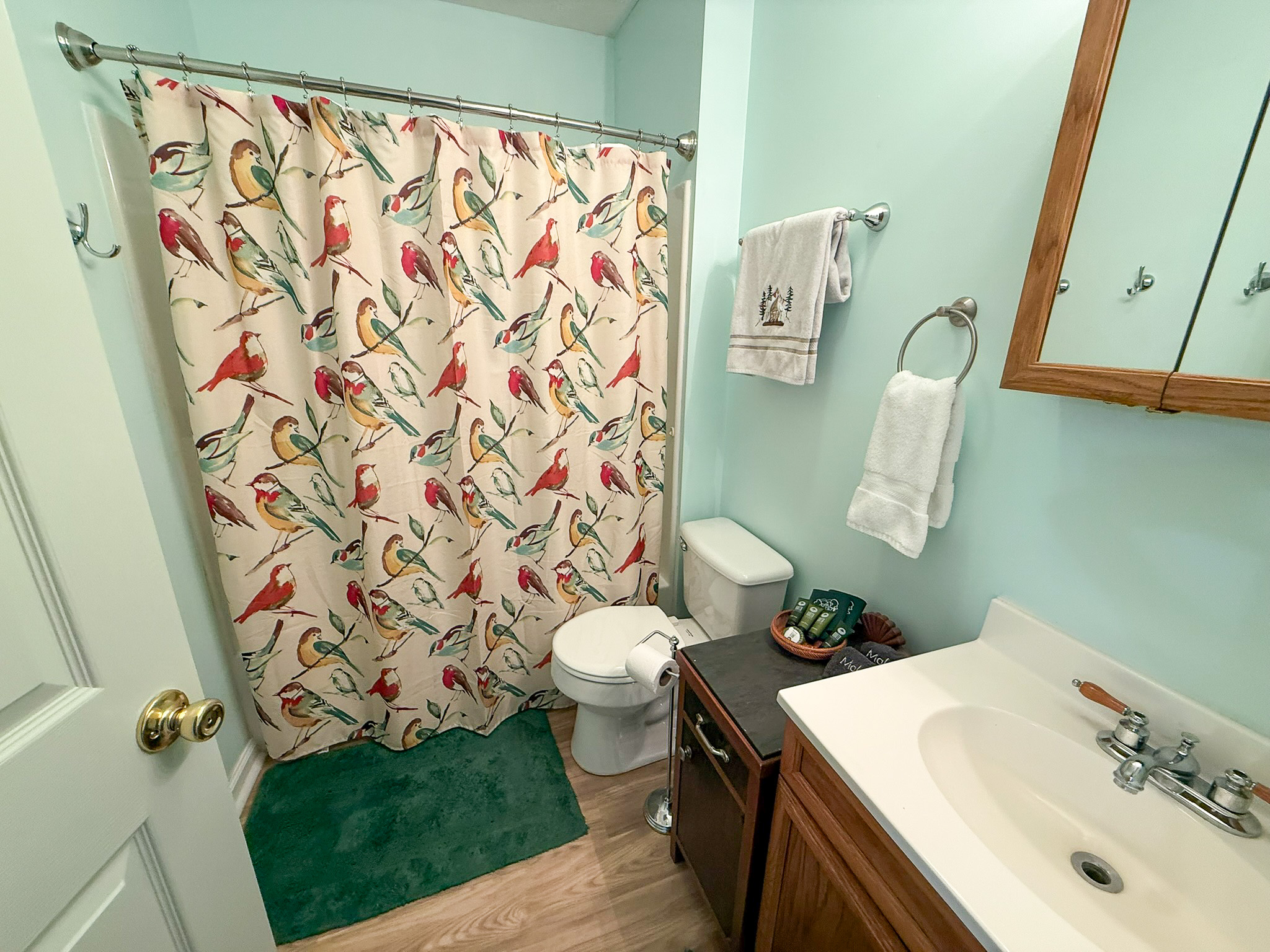 Upstairs, you’ll find another comfortable queen bedroom with a Smart TV and its own full bath, making it ideal for couples or additional guests.