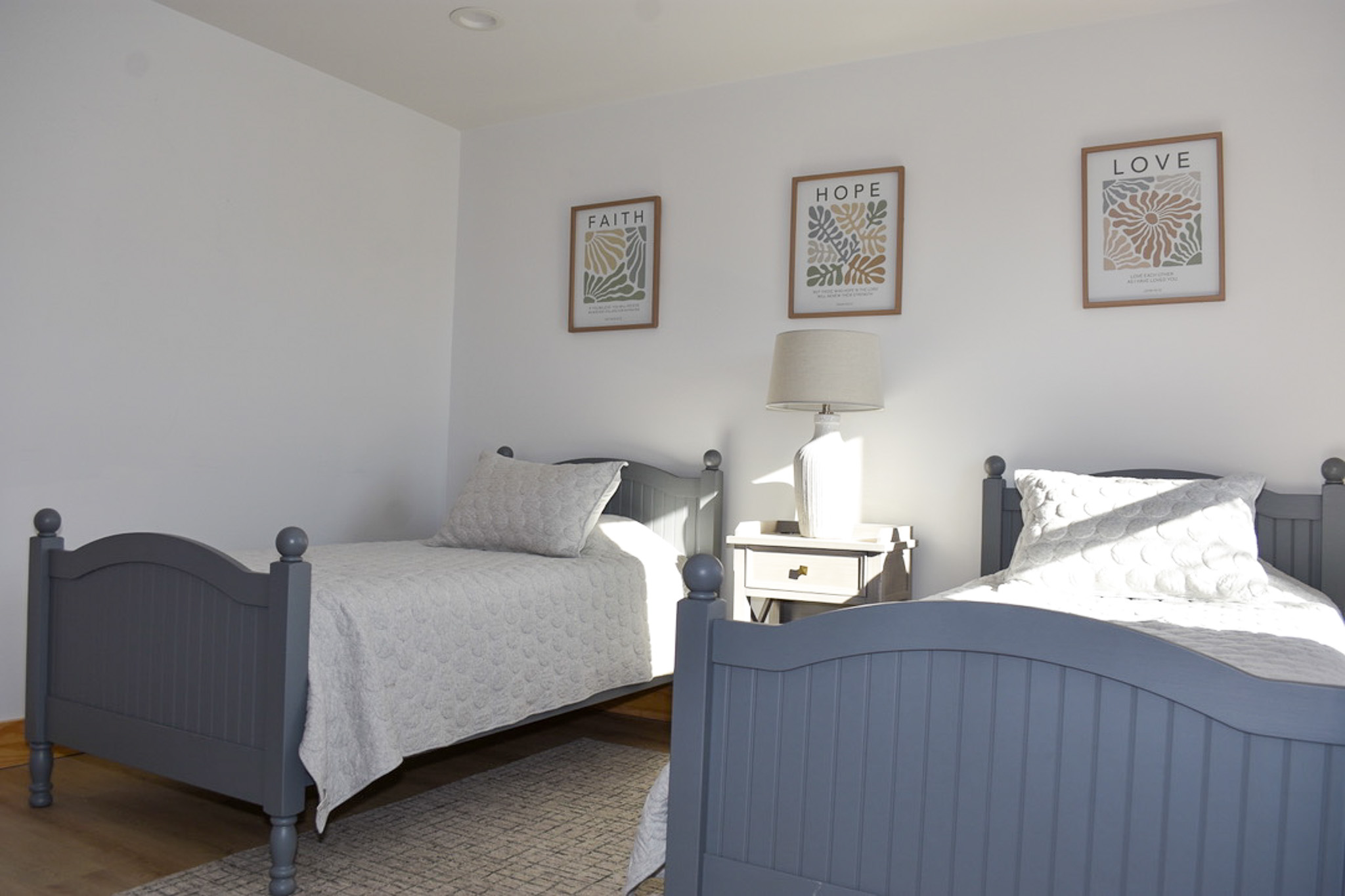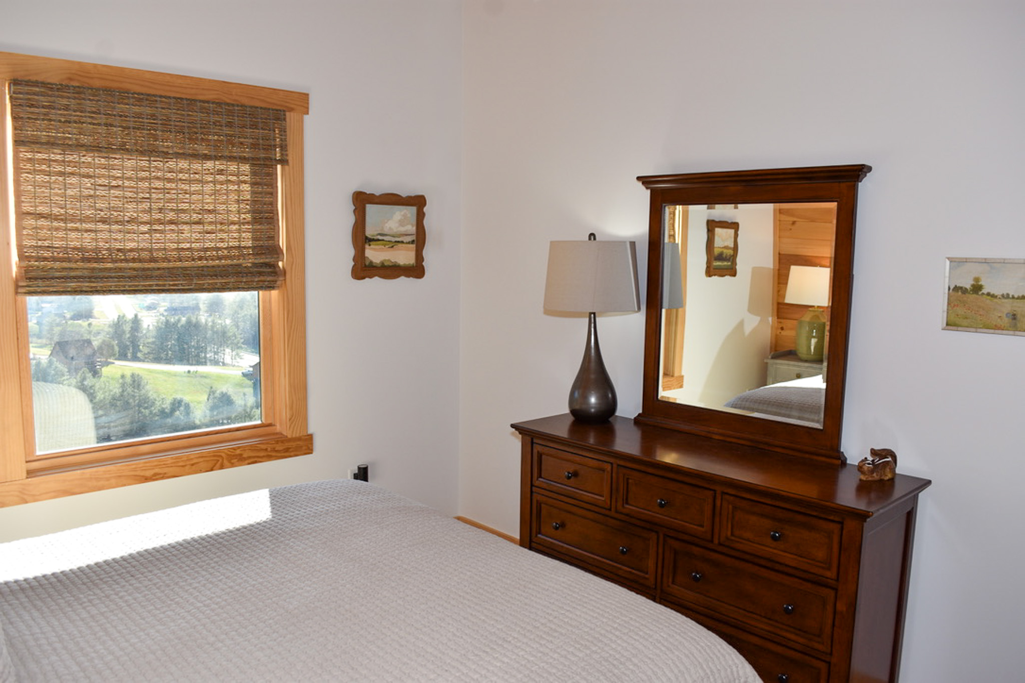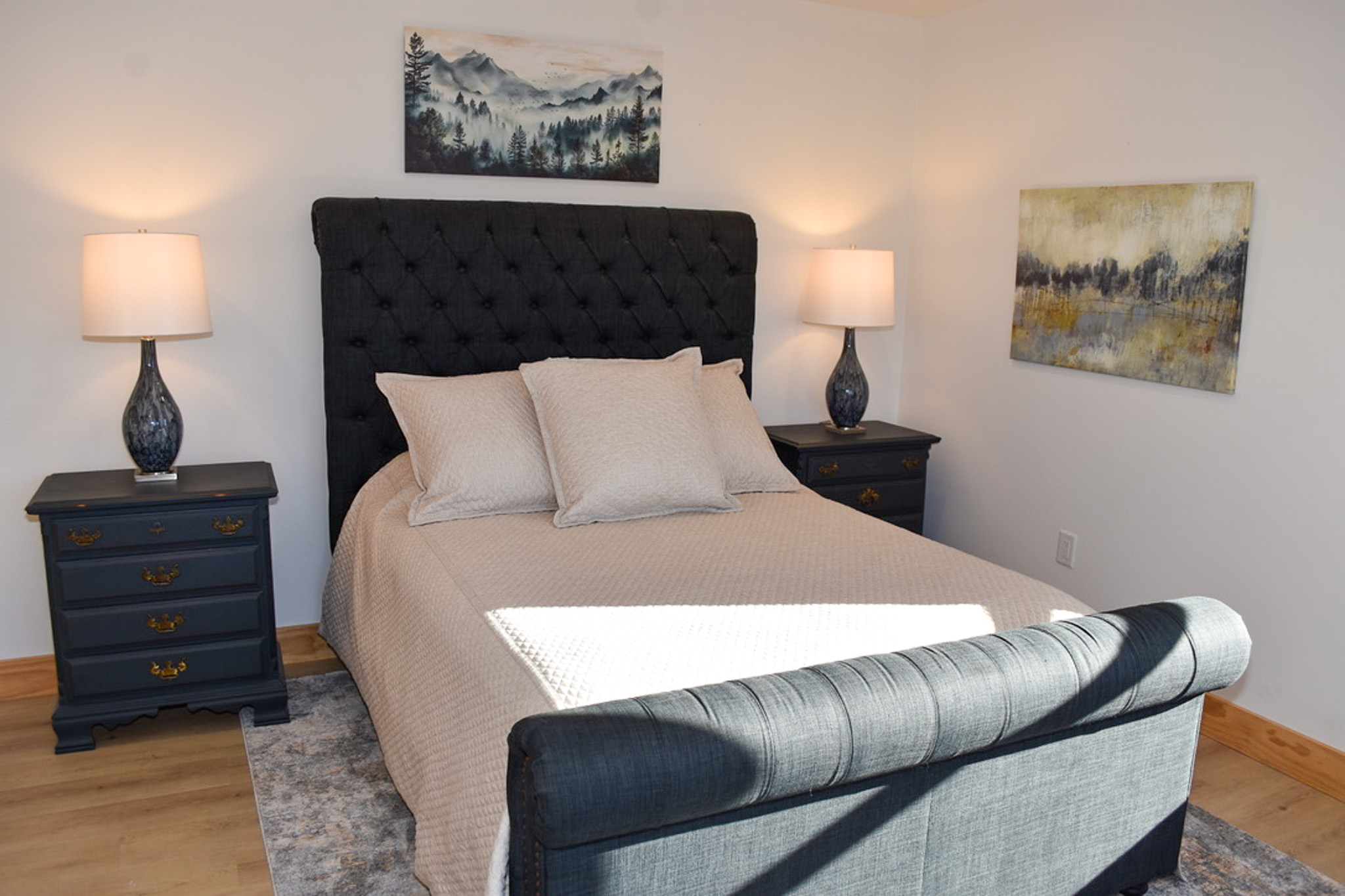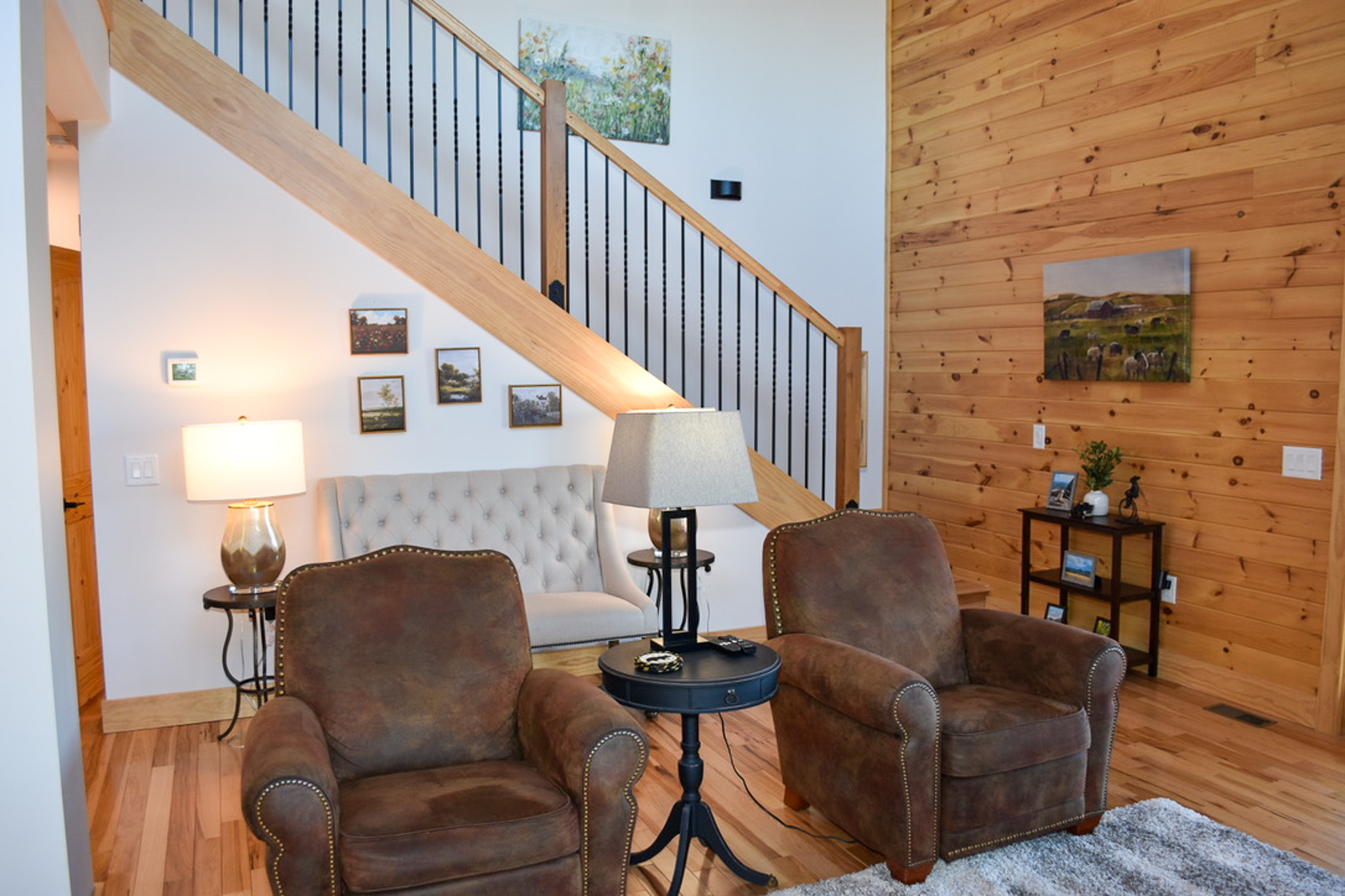 Upstairs, a charming loft overlooking the main living area offers a cozy space for reading, crafts, or watching a favorite show on the flat-screen TV. Two spacious bedrooms with vaulted ceilings and tasteful furnishings share a full bath—one offering two twin beds, the other a comfortable queen.